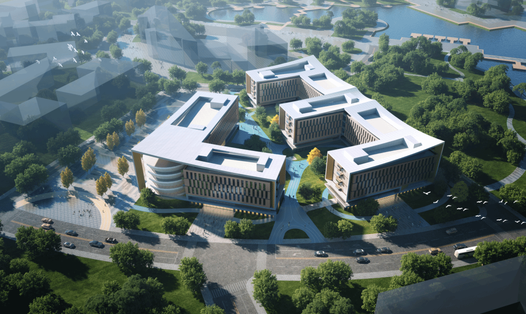 武科大创新中心项目(蓝色,左为实训中心,右为创新中心)
